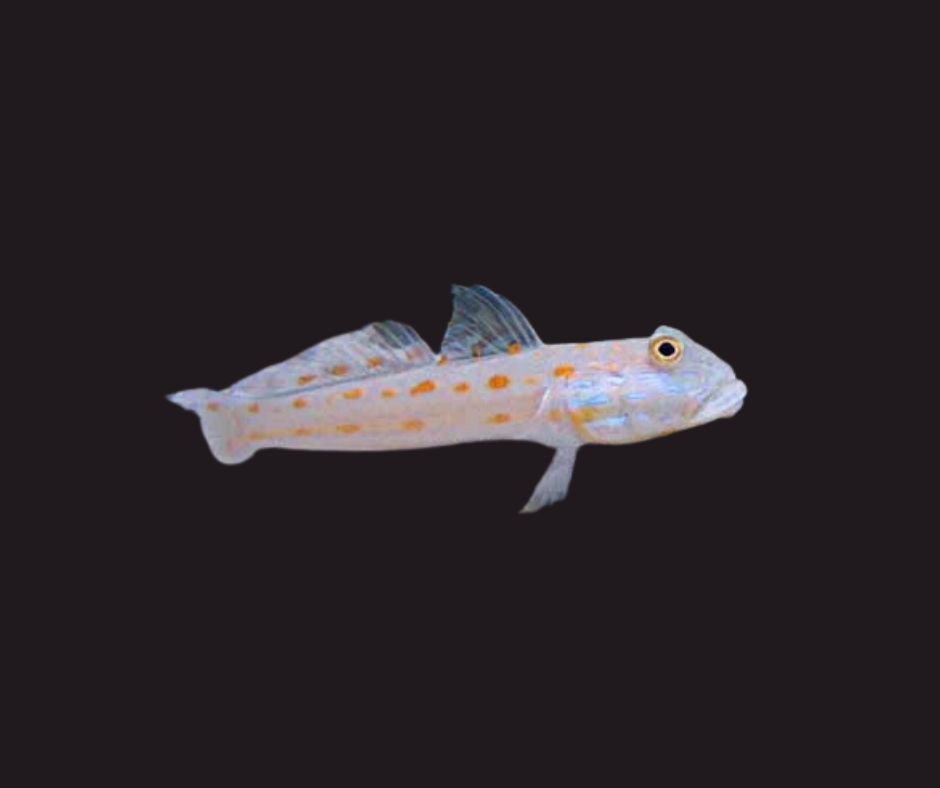 The Diamond Watchman Goby is also commonly referred to as the Pretty Prawn, Maiden, Orange Spotted Diamond, Orange-dashed, or Orangespotted Sleeper Goby. It was first discovered in the Indo-Pacific Ocean in 1956 by Tomiyama. The head and body are white with orange spots. It is a very timid fish that makes a great addition to the reef tank because of its longevity.