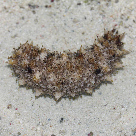 This reef safe sea cucumber is a perfect addition to any established reef tank with a sand base. This species reaches a length of around 5" and will most often be active at night where they are master cleaner as they reach into all the nooks and crannies.
